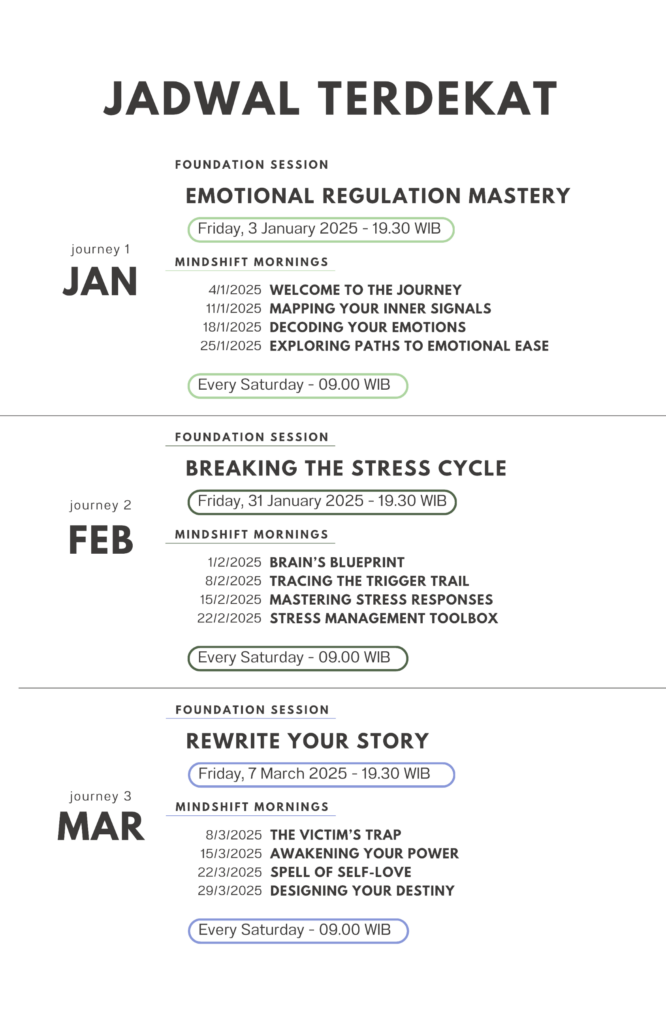 Orang tua dapat membeli JOURNEY secara terpisah dan tidak harus mengikuti urutan tertentu. Namun, untuk pengalaman yang lebih maksimal dan transformasi yang efektif, sangat disarankan untuk menyelesaikan perjalanan secara berurutan dari Journey 1 hingga Journey 3
